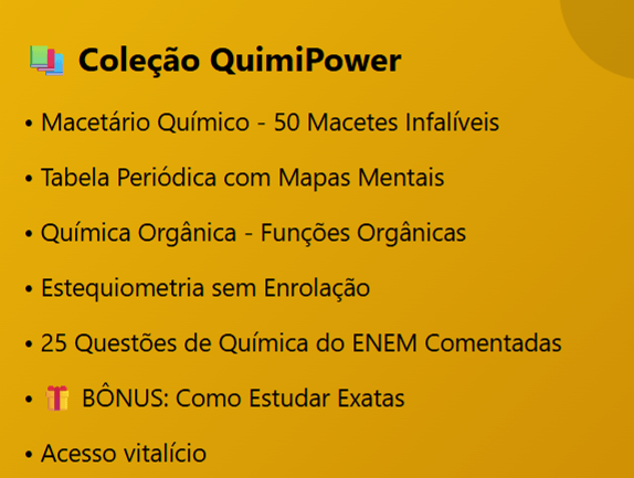 Coleção completa de 5 e-books QuimiPower + bônus exclusivo: desde macetes infalíveis até técnicas de estudo para você arrasar no ENEM e vestibulares