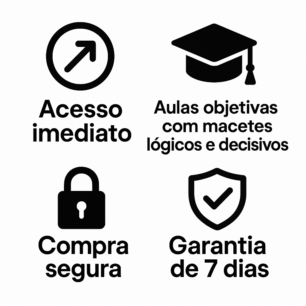 ✅ Premia quem estuda com método, lógica e conteúdos organizados do jeito que a banca cobra.