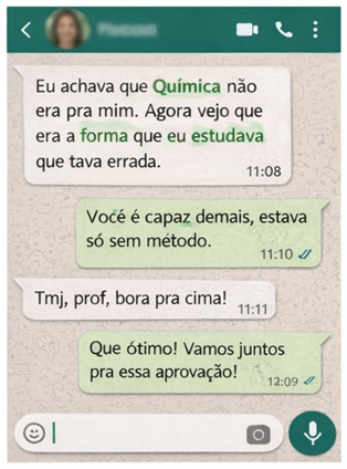 Aqui você recebe método, lógica e direcionamento real, para transformar a Química em ponto forte — mesmo começando do zero.
