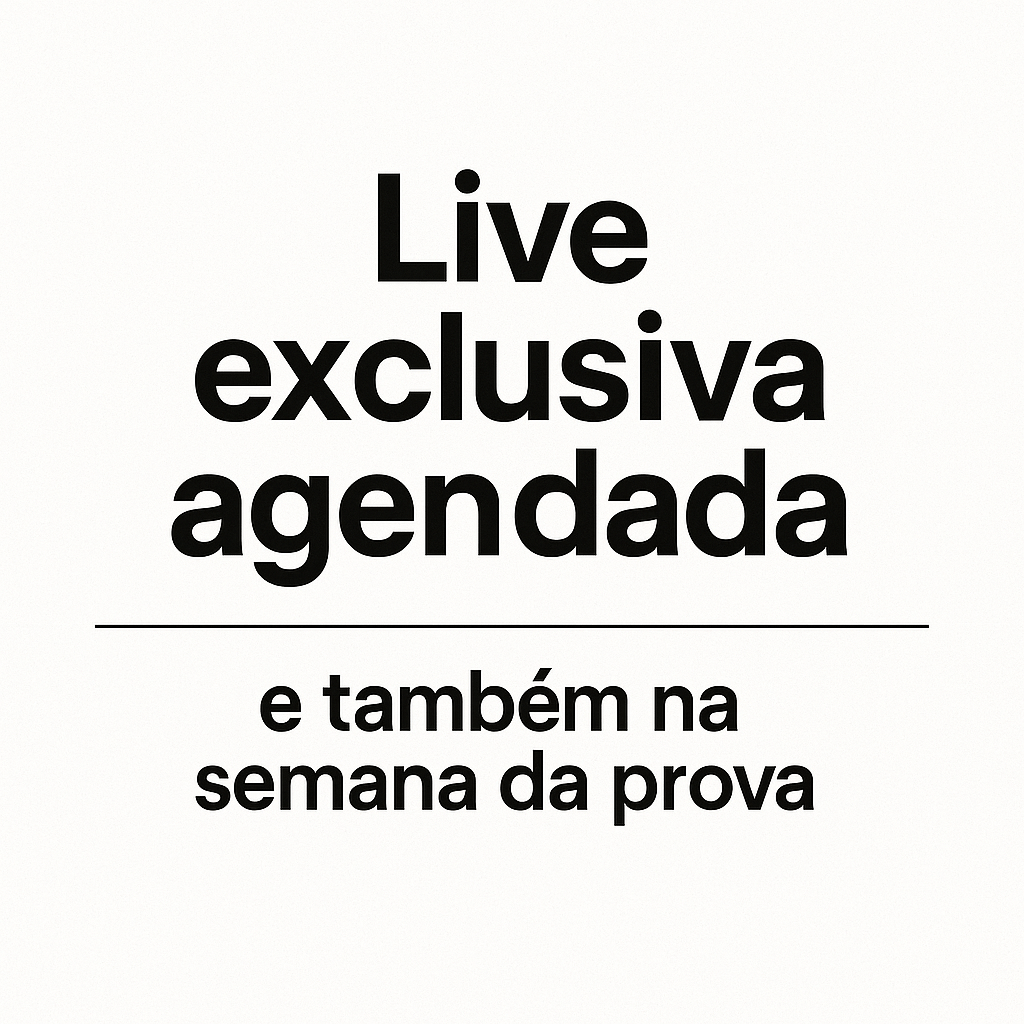Além disso, haverá aulas ao vivo pré-agendadas e exclusivas, para aprofundar o conteúdo e tirar dúvidas em tempo real.