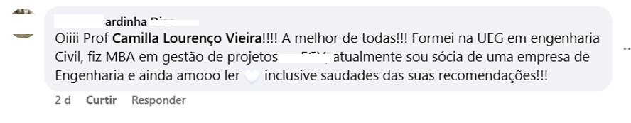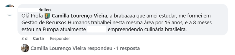 Lá, poderá tirar dúvidas diretamente com a Professora Doutora Camilla Vieira e interagir com outros alunos.